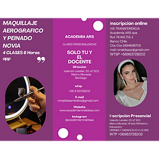 *Esta área del maquillaje realza tu trabajo profesional, por lo que debes tener experiencia en el área de belleza. Es un curso teórico-práctico en el que aprenderás el manejo del aerógrafo tanto en técnicas de aplicación, como su funcionamiento, limpieza, armado y desarmado. Te enseñaremos como maquillas el rostro aplicando una uniforme base de maquillaje, sombras de ojos, delineados, blush, cejas, contouring, realizando un maquillaje de belleza en su totalidad con la ayuda del aerógrafo. Precio: 400.000 CLP (abono de 150.000 mil, en la segunda clase, abono de 250.000)